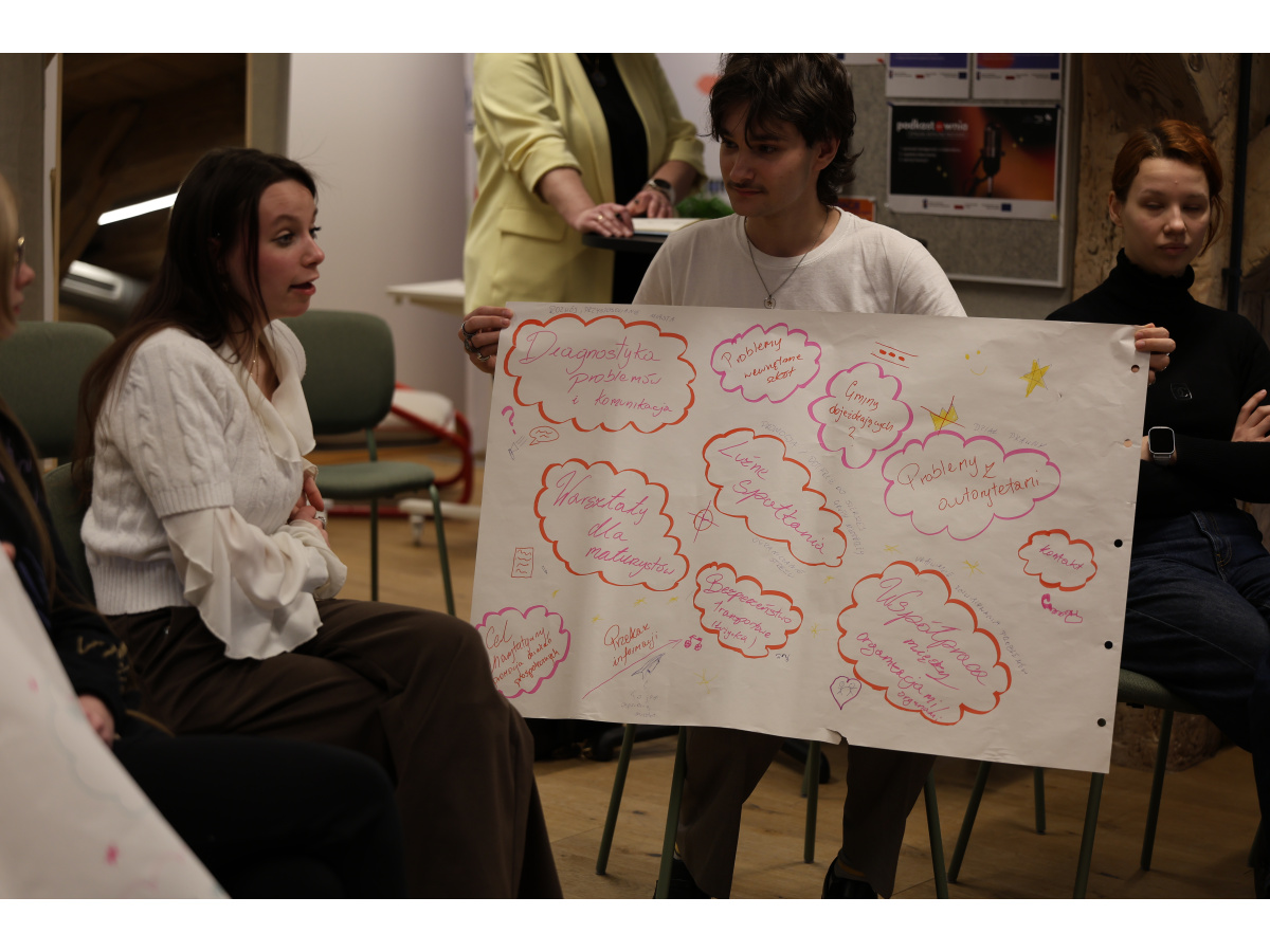 W drugiej części spotkania wszyscy podzielili się na grupy. W formule krótkich rozmów przy specjalnych „stacjach” uczestnicy mogli zadawać pytania oraz dzielić się swoimi opiniami. Dzięki temu mogliśmy bezpośrednio porozmawiać z młodzieżą i dowiedzieć się, czego oczekuje ona od Młodzieżowej Rady oraz jakie tematy uważa za najważniejsze.